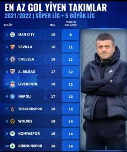 Yapılan araştırmalara göre 2021/2022 sezonun’da Süper Lig ve Avrupa’nın Büyük 5 Ligin’de en az gol yiyen takımlar belirlendi.