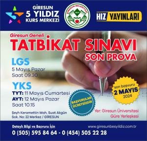 Bu kapsamda, Giresun Belediyesi ile 5 Yıldız Çözüm Merkezi Hız Yayınları ortaklaşa olarak Giresun geneli deneme sınavı düzenliyor.